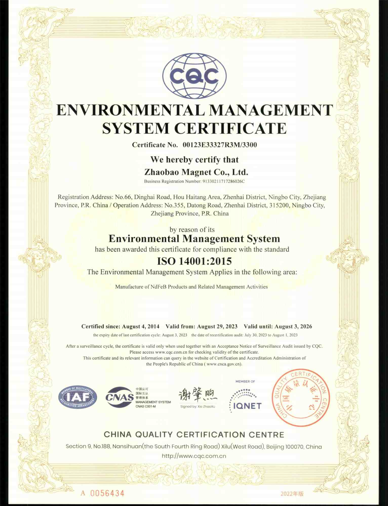 Onze neodymiummagneetproducten voldoen volledig aan internationale normen, gecertificeerd door IATF16949 (auto-industrie), ISO9001 (kwaliteitsmanagement), ISO14001 (milieumanagement), ROHS, REACH, CE, CPC, EN71, ASTM en CHCC. Deze certificeringen bevestigen dat onze neodymiummagneten voldoen aan strikte veiligheids-, milieu- en prestatiecriteria, waardoor ze zonder wettelijke belemmeringen geschikt zijn voor export naar Europa, Noord-Amerika en Zuidoost-Azië.